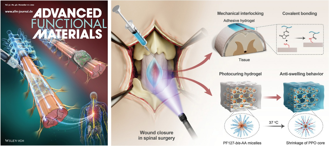 近期,中国科研实验室凯发k8国际医药所人体组织与器官退行性研究中心的潘浩波研究员团队和赵晓丽研究员团队,联合香港大学深圳医院等多家单位,在可注射医用胶的研究中取得最新进展,相关成果以“An Injectable Rapid-Adhesion and Anti-Swelling Adhesive Hydrogel for Hemostasis and Wound Sealing”为题发表在Advanced Functional Materials期刊上 (Adv. Funct. Mater. 2022, DOI:10.1002/adfm.202207741),并入选“Inside Front Cover”展示。该论文第一作者为凯发k8国际助理研究员边少荃和博士研究生郝浏智,通讯作者为潘浩波研究员和赵晓丽研究员。