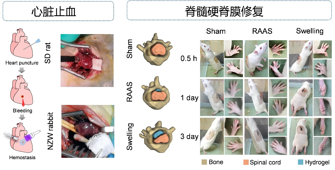 2. RAAS hydrogel用于止血和损伤组织封闭,抗吸水溶胀的“稳态能够避免压迫损伤脊髓组织