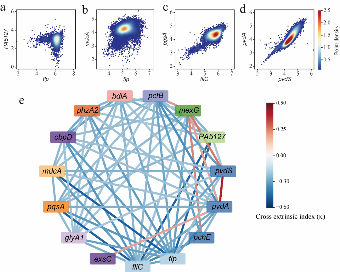 综上,该研究给予了丰富的铜绿假单胞菌在单细胞层次上转录调控噪声的实验数据,增加了对铜绿假单胞菌种群个体差异化的理解,为探究和理解细菌如何适应复杂的生活环境给予了数据支持。