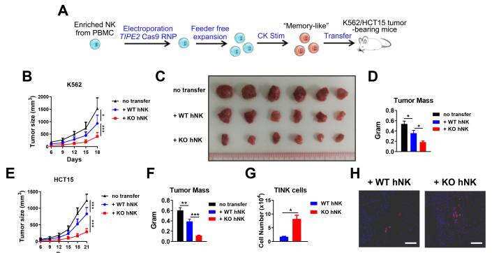 图3. 顺利获得CRISPR/Cas9敲除TIPE2促进NK细胞的过继治疗