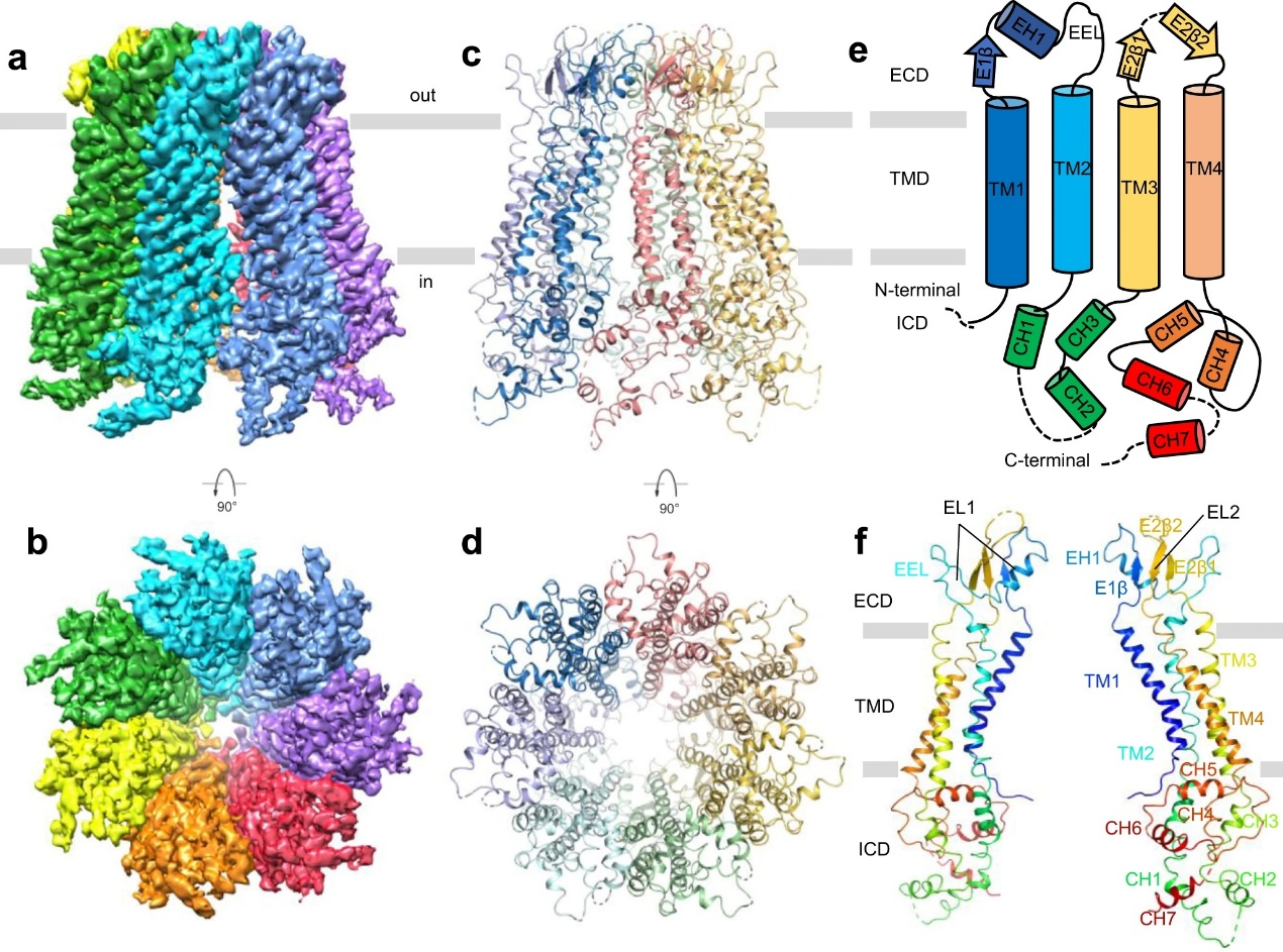 1. Zhang, H., Wang, S., Zhang, Z. et al. Cryo-EM structure of human heptameric pannexin 2 channel. Nat Commun 14, 1118 (2023).