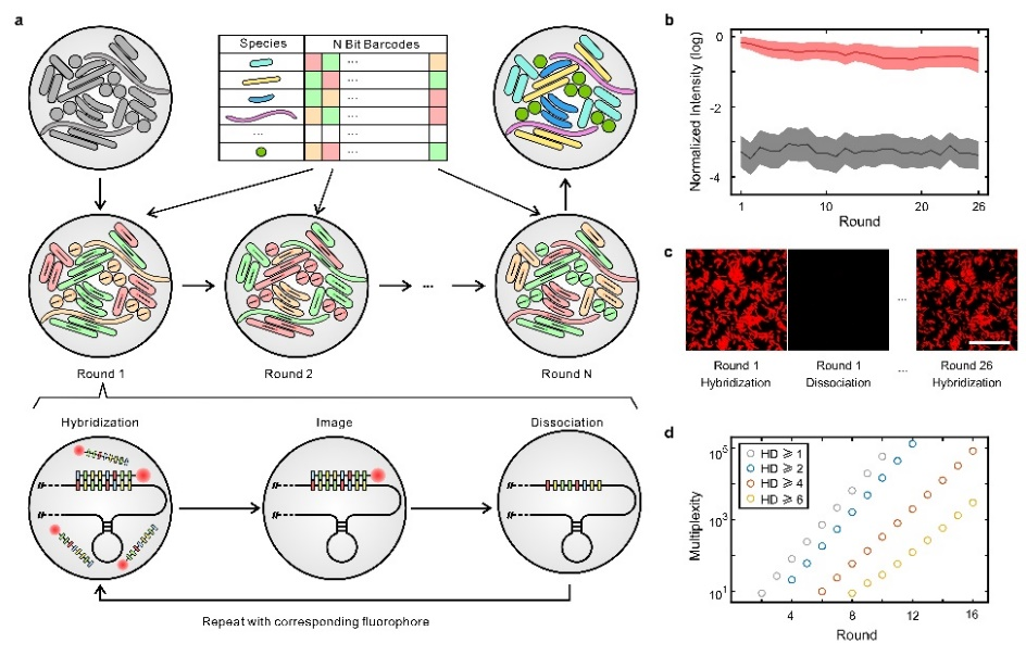 3月17日,中国科研实验室深圳先进技术研究院合成微生物组学研究中心、深圳合成生物学创新研究院戴磊课题组Nature Communications发表了基于成像的空间微生物组最新研究成果,题为"Spatial profiling of microbial communities by sequential FISH with error-robust encoding"。该团队开展了一种可容错编码的序贯荧光原位杂交(SEER-FISH)技术,用于解析复杂微生物群落的空间结构。该方法可识别复杂群落中的不同微生物物种,在单细胞尺度上原位解析微生物物种之间以及微生物-宿主之间的相互作用,是研究微生物群落的生态和功能的重要工具。团队成员博士生曹朝辉和左文龙博士为共同第一作者,戴磊研究员为文章通讯作者。
