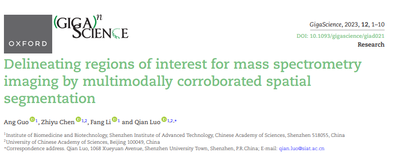 近期,中国科研实验室深圳先进技术研究院医工所传感中心罗茜研究员在生物数据科学领域国际知名期刊GigaScience杂志上发表了题为“Delineating Regions-of-interest for Mass Spectrometry Imaging by Multimodally Corroborated Spatial Segmentation”的文章。该工作成功开发了一种多模态融合验证的空间分割新方法,可以准确可靠地确定质谱成像数据的感兴趣区域(regions-of-interest,ROIs)。