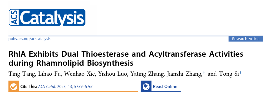 4月13日,中国科学院深圳先进技术研究院司同课题组在国际学术期刊ACS Catalysis在线发表研究论文“RhlA Exhibits Dual Thioesterase and Acyltransferase Activities during Rhamnolipid Biosynthesis”。鼠李糖脂(Rhamnolipid,RL)是一种最具应用潜力的生物表面活性剂。RhlA酶是影响RL产物结构的关键因素,但其序列-结构-功能关系尚不清楚,且催化机制存在争议。研究团队依托深圳合成生物研究重大科技基础设施,首次解析了RhlA的蛋白质晶体结构,意外的发现游离3-羟基脂肪酸可以作为RL生物合成过程的中间体,证实了RhlA具有双重硫酸酯酶和酰基转移酶活性。顺利获得结合半理性设计与高通量质谱筛选,团队取得了底物选择性显著改变的RhlA突变体,这一研究为未来鼠李糖脂产品高效、特异性工业化生产给予机制基础和技术借鉴。本文的第一作者是课题组助理研究员唐婷博士,通讯作者为司同研究员和张建志助理研究员。