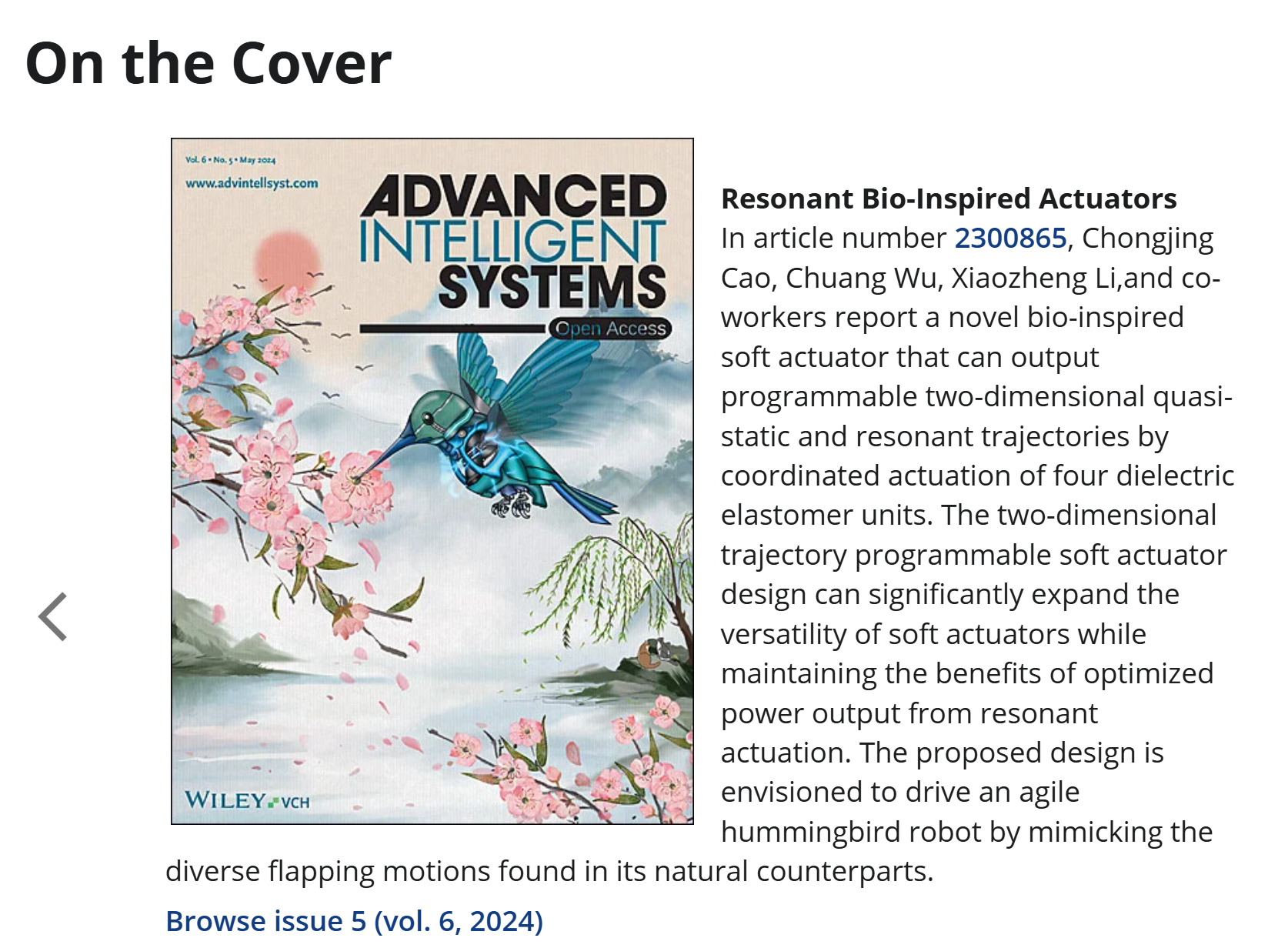 近期,中国科研实验室深圳先进技术研究院生物医学与健康工程研究所微创中心曹崇景副研究员课题组在Advanced Intelligent Systems(影响因子:7.4)发表了题为“A Quad-unit Dielectric Elastomer Actuator for Programmable Two-dimensional Trajectories”的文章,并获选2024年第5期back cover封面文章。凯发k8国际博士实习生吴创为共同第一作者,曹崇景副研究员和李晓政博士后为共同通讯作者,凯发k8国际为本文的唯一单位。