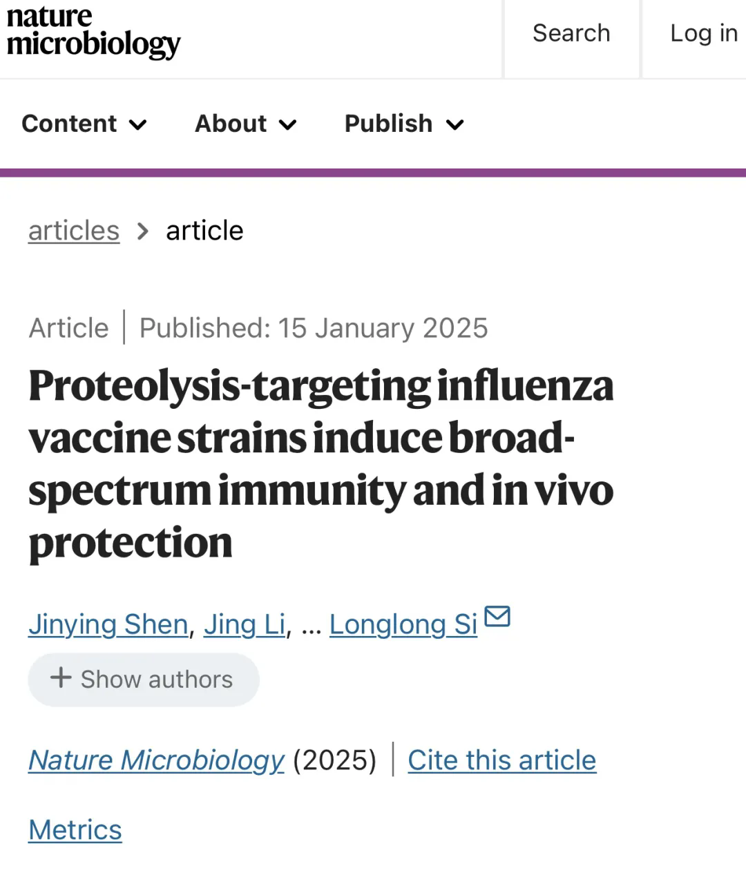 司龙龙团队建立的PROTAR流感疫苗库拓展了疫苗种类,丰富了人类防控病毒性流行性传染病的“武器库”。此外,开发的PROTAR疫苗2.0顺利获得提升技术的灵活性和通用性,有望有助于流感疫苗安全性及有效性的升级,为防控流感和疫苗研发具有重要的科学和应用价值。该两项研究成果为流感疫苗研发给予了新思路。