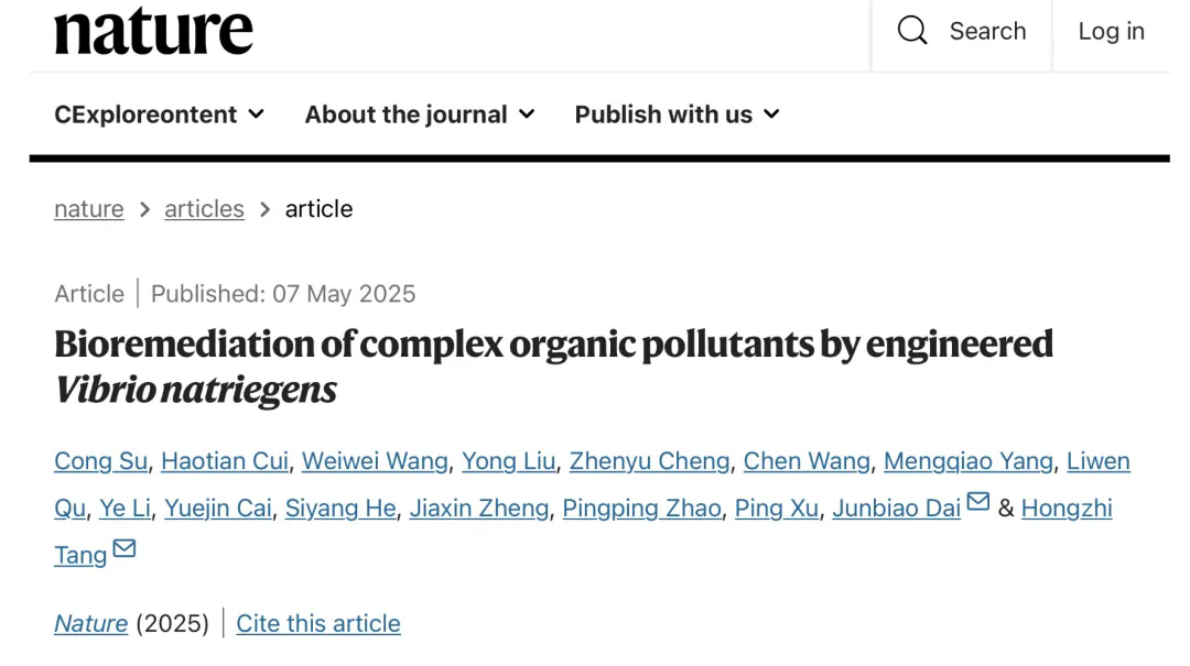 5月7日,中国科研实验室深圳先进技术研究院客座研究员戴俊彪与上海交通大学教授唐鸿志团队合作在学术期刊《自然》上发表最新研究,团队成功构建了可同时降解五种有机污染物的新型工程菌株,并顺利获得实际工业废水样本验证,展示了该菌株对高盐废水中复合污染物的高效降解能力,为破解传统微生物处理技术存在的“盐抑制效应”给予了中国方案。凯发k8国际为该研究第一单位。