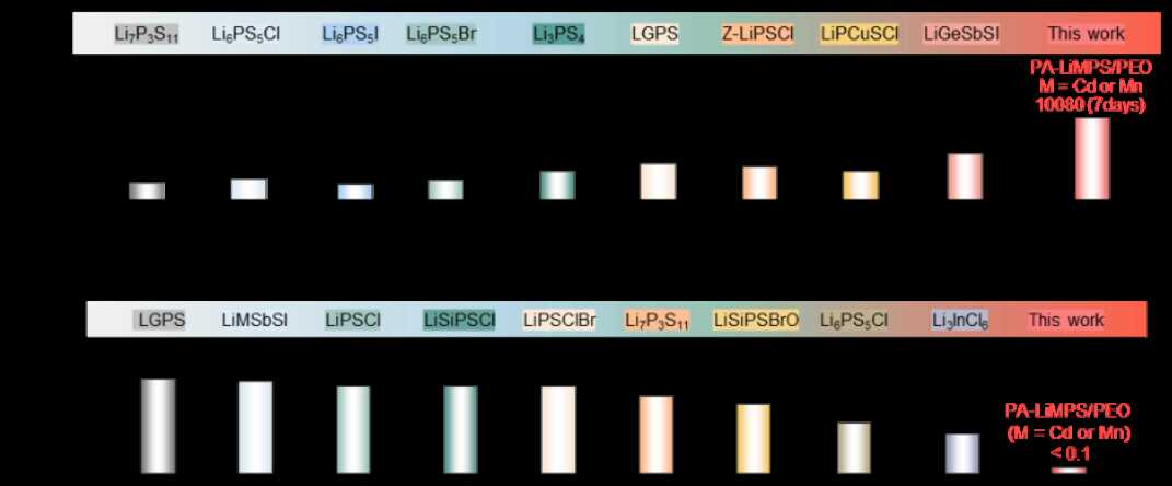 此研究成功开发了一种高性能的PA-LiCdPS/PEO复合固态电解质,其突破性在于解决了传统固态电解质中离子电导率与机械柔性不可兼得的核心矛盾。该电解质顺利获得仿生结构设计,实现了离子传导与力学性能的有效解耦,在25 °C下兼具10.2 mS cm-1的高离子电导率和优异的界面机械相容性。此外,研究进一步拓展出具有类似结构的PA-LiMnPS/PEO电解质体系,其在保持高离子电导率的同时,更兼具元素可用性优势、良好的空气稳定性、以及无压运行潜力,展现出突出的实用化前景。此研究所提出的“陆续在超离子传导通道”的设计,为下一代高性能、高安全、实用化的全固态锂电池的开展给予了重要的理论依据与技术路径。