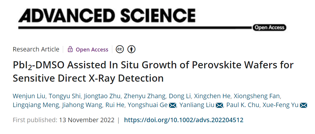Advanced Science | 原位生长钙钛矿晶片实现低剂量直接X射线探测成像