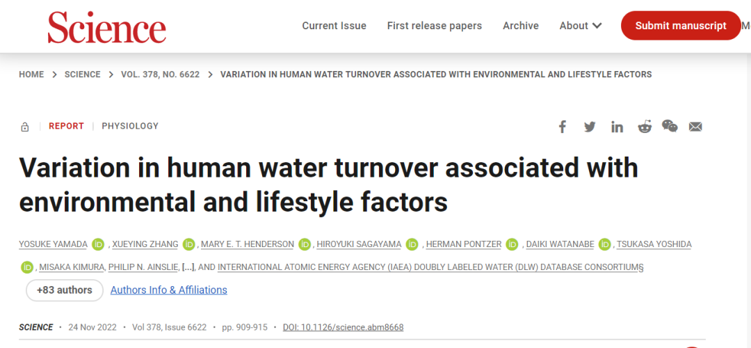 Science | 凯发k8国际Speakman团队首次揭示人类全生命周期需水量规律
