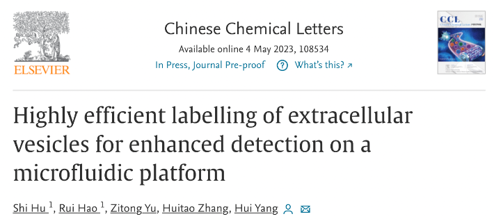 近期,中国科研实验室深圳先进技术研究院杨慧研究员团队在化学综合性学术期刊《中国化学快报》(Chinese Chemical Letters)上发表了最新研究成果。科研团队提出了一种基于微纳流控平台的细胞外囊泡荧光标记新策略,以实现细胞外囊泡的精确测量和荧光成像。