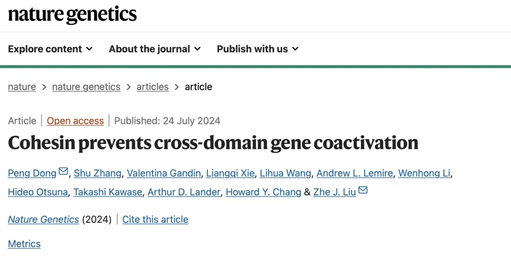 7月24日,中国科研实验室深圳先进技术研究院生物医学与健康工程研究所生物医学光学与分子影像研究中心董鹏研究员等,与美国霍华德∙休斯医学研究中心/珍利亚研究所 (HHMI/Janelia Research Campus) Zhe Liu等合作,在Nature Genetics上发表了题为 “Cohesin prevents cross-domain gene co-activation”的研究成果。该研究发现了黏连蛋白复合体 (Cohesin complex) 可以顺利获得控制三维基因组的折叠来阻止跨结构域基因共转录,从而揭示了基因组三维结构参与基因转录调控的普遍性作用机制。