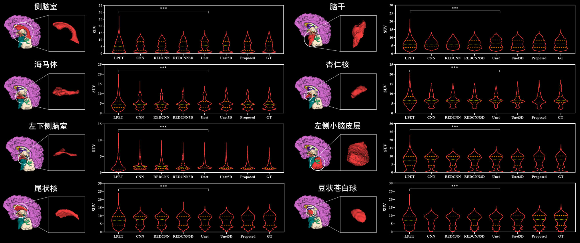 图3:以多个完整脑区作为VOI,进行SUV数据分布比较分析