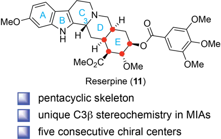 利血平属于单萜吲哚生物碱大类,这一类天然产物包括著名的抗癌药物长春碱、喜树碱等,但它们在C3号位具有显著的结构差异。与其他已解析合成途径的单萜吲哚生物碱不同,利血平具有独特的C3β构型,这使其成为合成化学的经典挑战。早在1960年,研究者顺利获得同位素示踪实验初步探索了利血平的生物合成,确认色胺是利血平的合成前体,但受限于当时的技术条件,对于自然界如何精准控制利血平C3β构型和五个陆续在手性中心的构建,仍然是个谜。