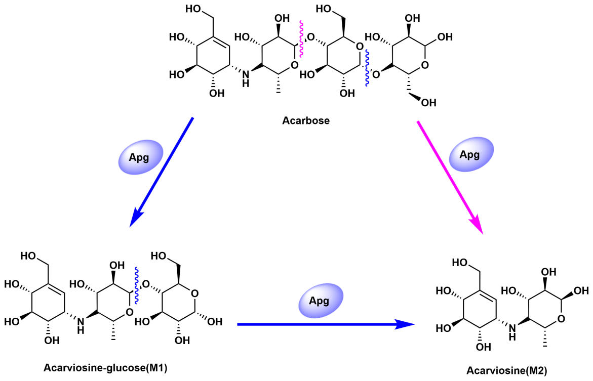 图5. Apg催化阿卡波糖水解反应的两步过程