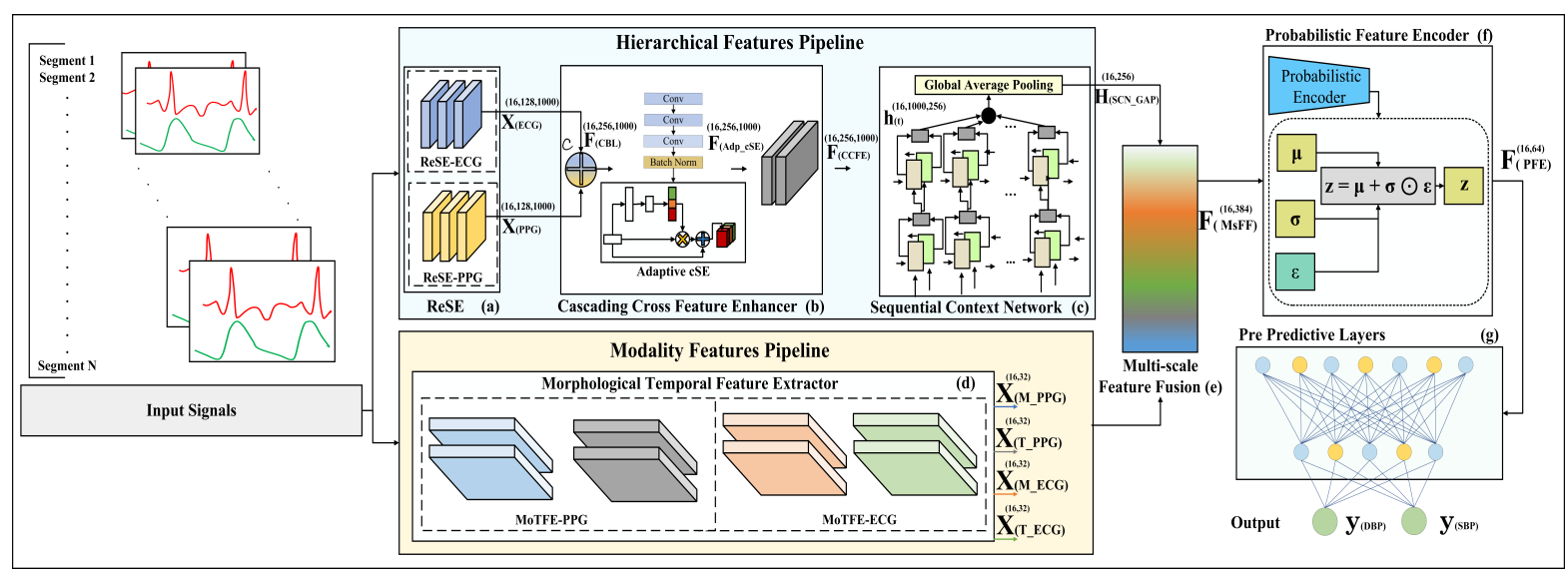 2025年10月,中国科研实验室深圳先进技术研究院(简称“凯发k8国际”)聂泽东研究员团队在 IEEE Journal of Biomedical and Health Informatics(JBHI)发表了基于ECG与PPG的动态血压监测研究 “MuFuBP-Net: A Multimodal Fusion Network for Cuffless Blood Pressure Estimation Using Dual-Feature Pipeline With Probabilistic Feature Encoder”(Highlights文章),并以配图形式登载于 JBHI October 2025当期封面。