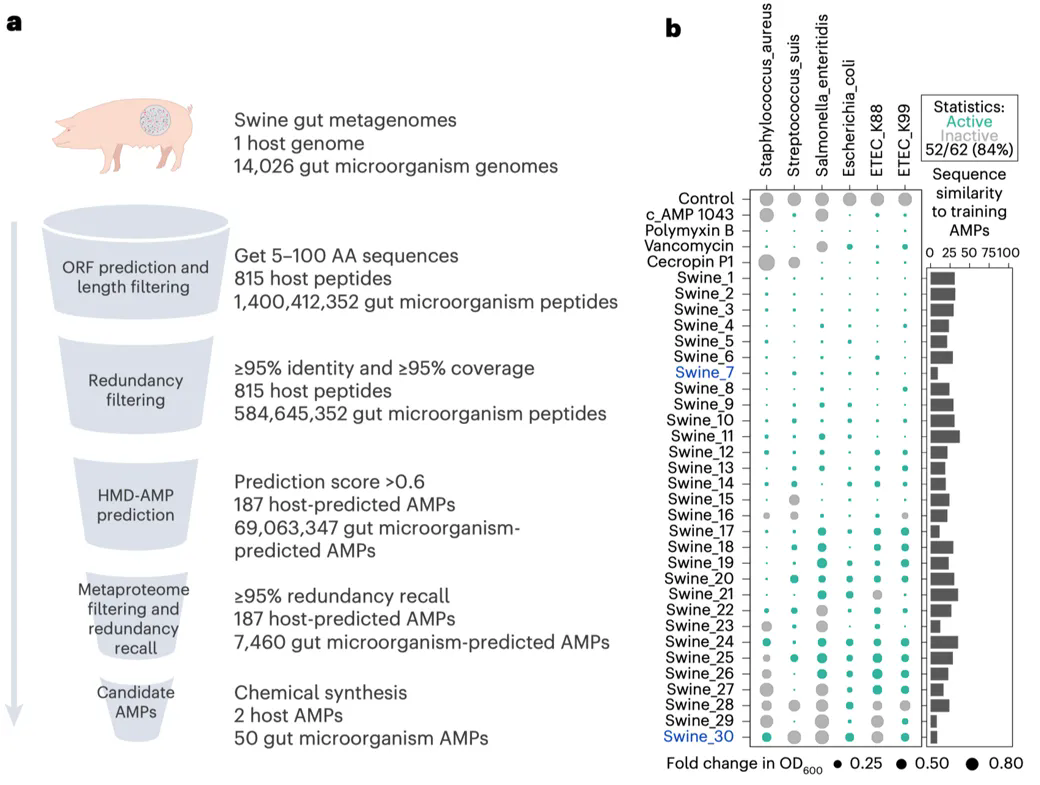图3. 对猪肠道微生物组和宿主基因组进行AMPs挖掘