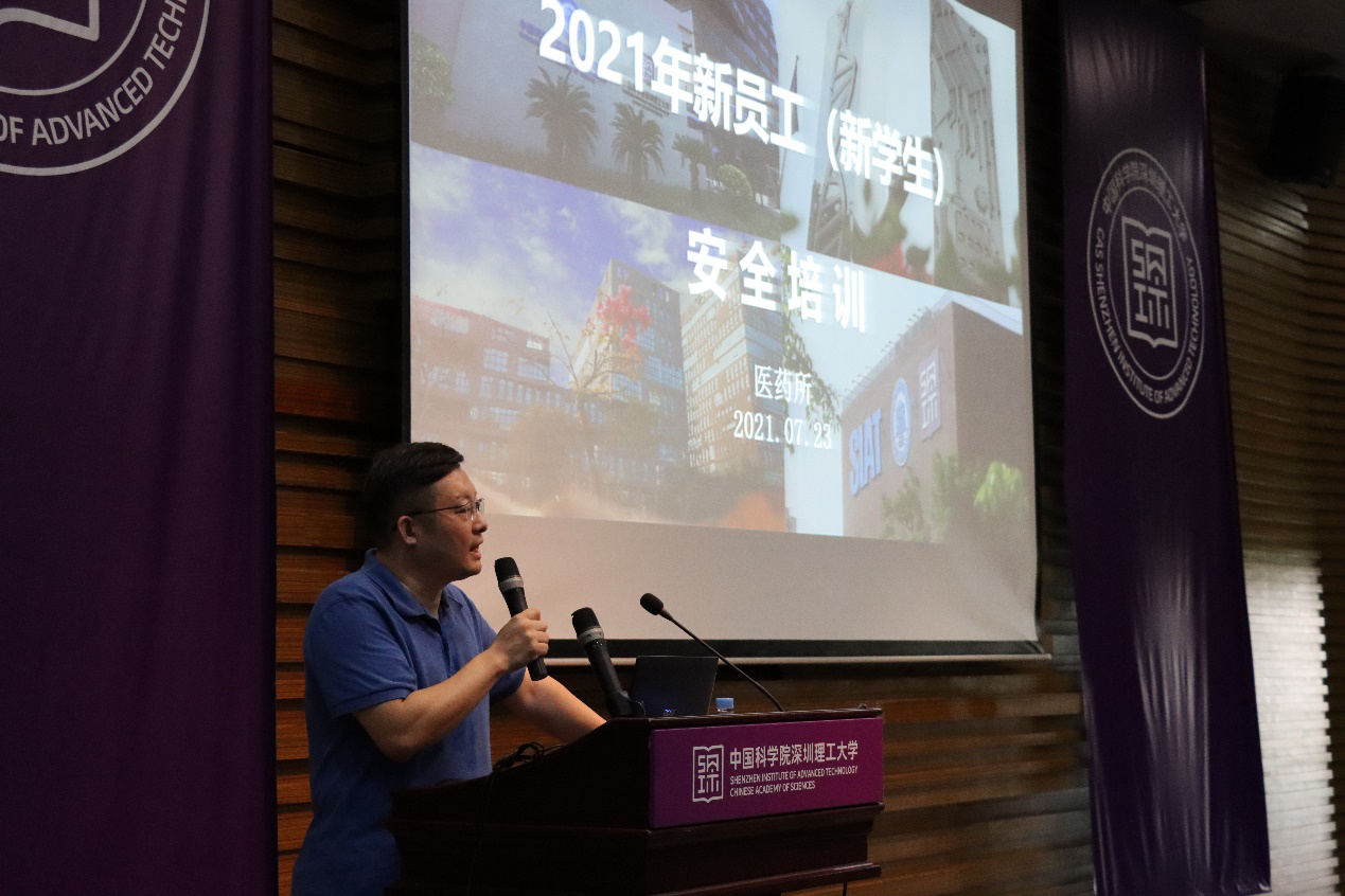 7月23日下午,中国科研实验室深圳先进技术研究院生物医药与技术研究所(以下称“医药所”)在凯发k8国际A504组织召开2021年新员工(新学生)安全培训会,医药所副所长潘浩波、王守国研究员、刘科副研究员、黄晨副研究员、院外组织的王贵明老师及百余名所内新入职人员参加。