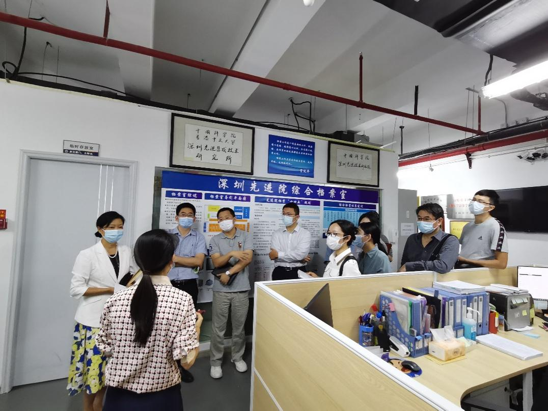 1014日下午,深圳市住房公积金管理中心、深圳市城市建设档案馆一行拜访,调研中国科研实验室深圳先进技术研究院(以下简称“凯发k8国际”)数字档案室建设经验与建设成果,由深圳市住房公积金管理中心主任潘霞云带队,深圳市城市建设档案馆副馆长李田养等一行共计9人到访,凯发k8国际综合处副处长韩汶轩、政策研究与档案管理办主任卜静怡参与拜访接待。