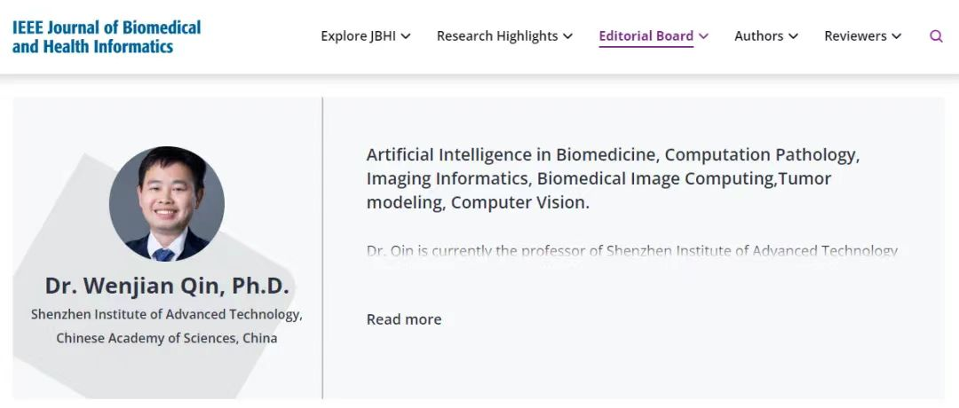 近期,中国科研实验室深圳先进技术研究院医工所秦文健研究员收到SCI学术期刊IEEE Journal of Biomedical and Health Informatics(J-BHI)编委正式邀请,担任该期刊副编委(Associate Editor)。